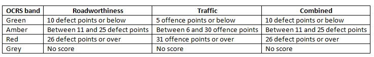 Do all O’Licence holders have a OCRS score? – No, You might have no score if DVSA doesn’t have any data on you for roadworthiness or traffic enforcement's from the past 3 years and so they have no base line score and therefore give the colour status of Grey